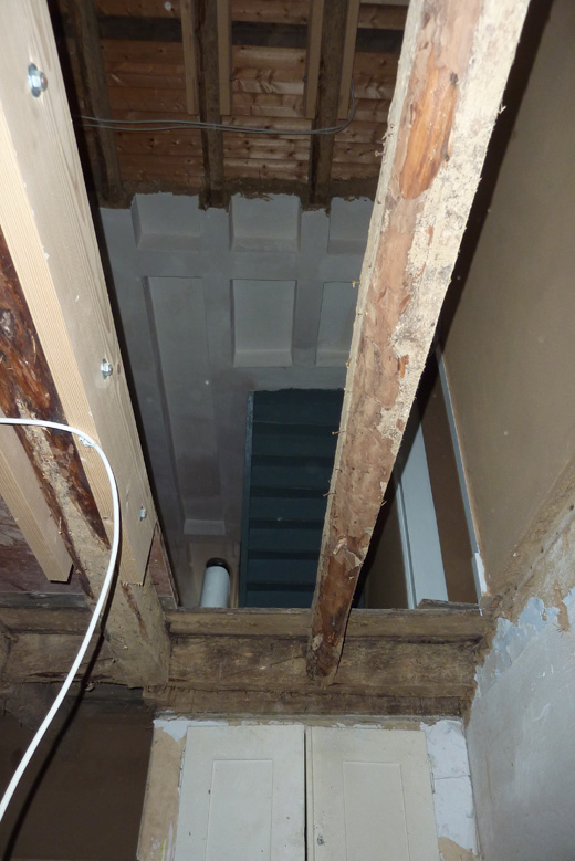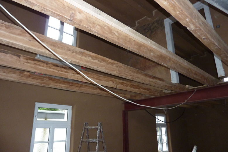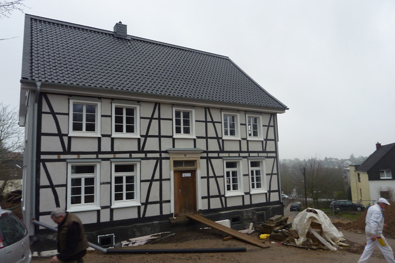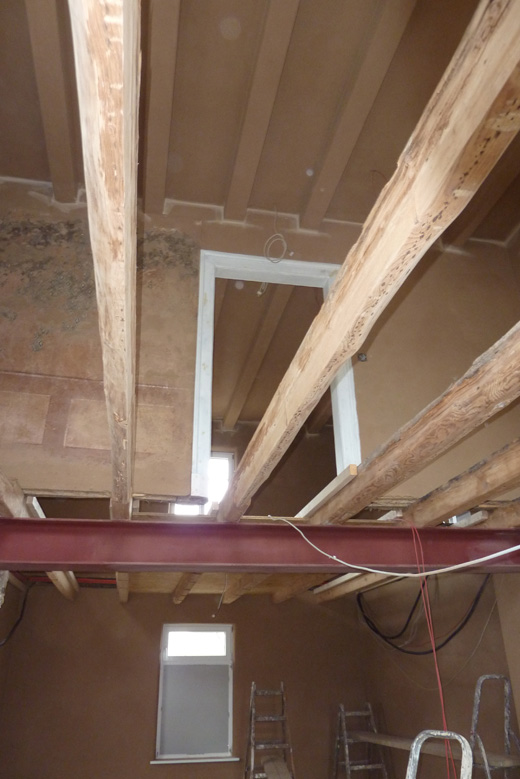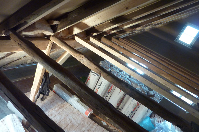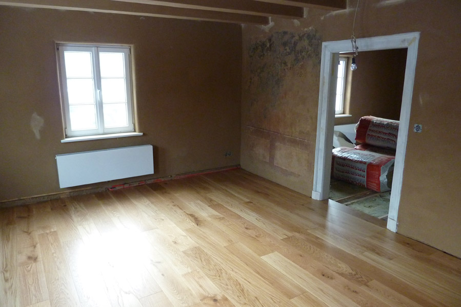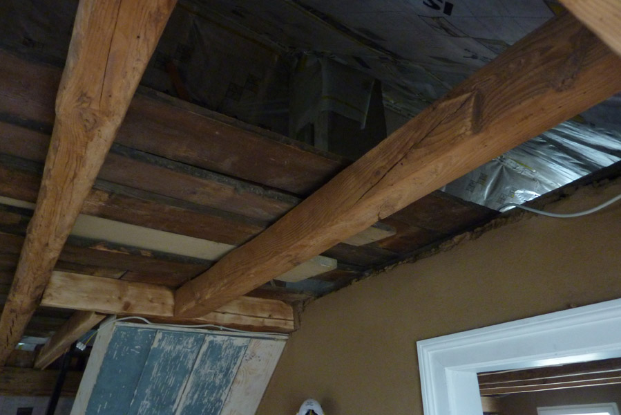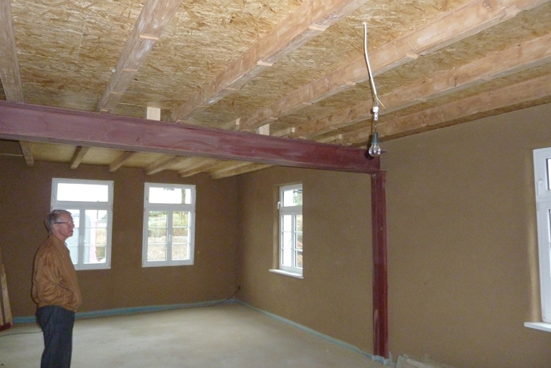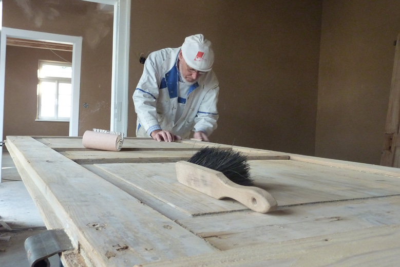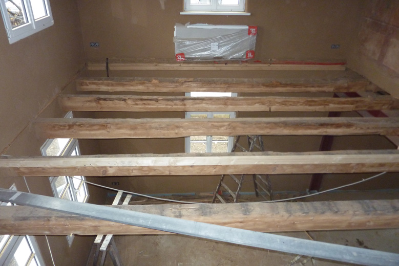Tolle Tage!Ein ganzer Zug von Freiwilligen hat sich auf den Weg durch's Haus gemacht und Folien verklebt, frisch verlegte Böden abgedeckt, Treppengeländer abgeschliffen, Dachlatten verschraubt, Gipskarton angebracht, Wände eingezogen und Deckenbalken gestrichen. Und das ganz ohne Masken - denn die hingen an der Wand...