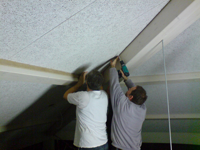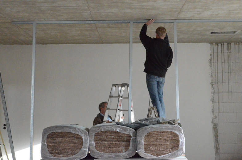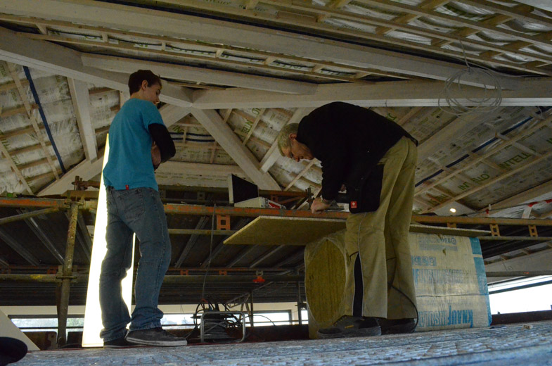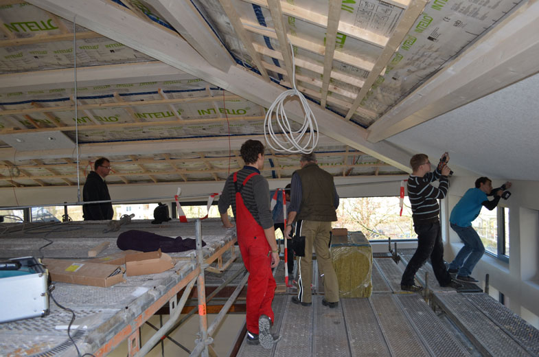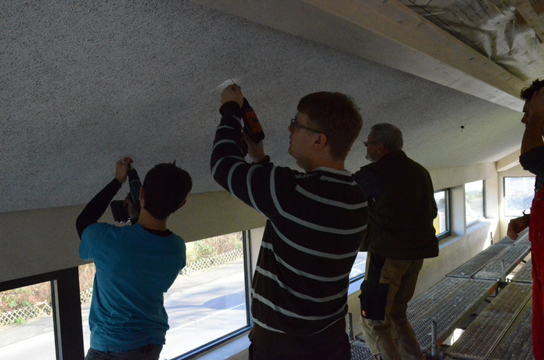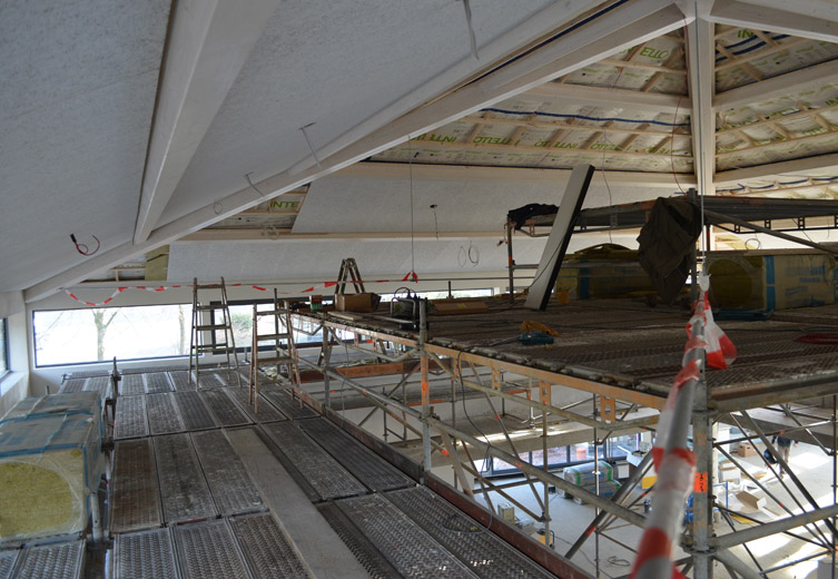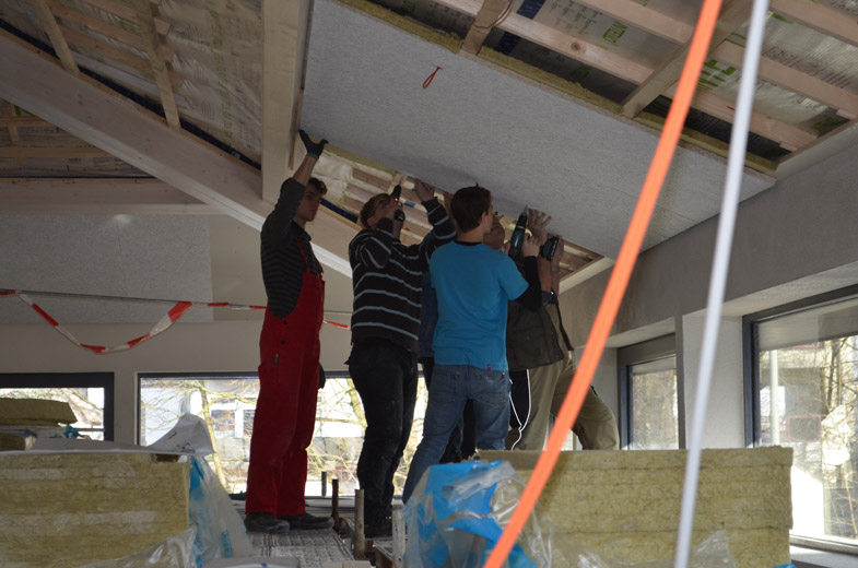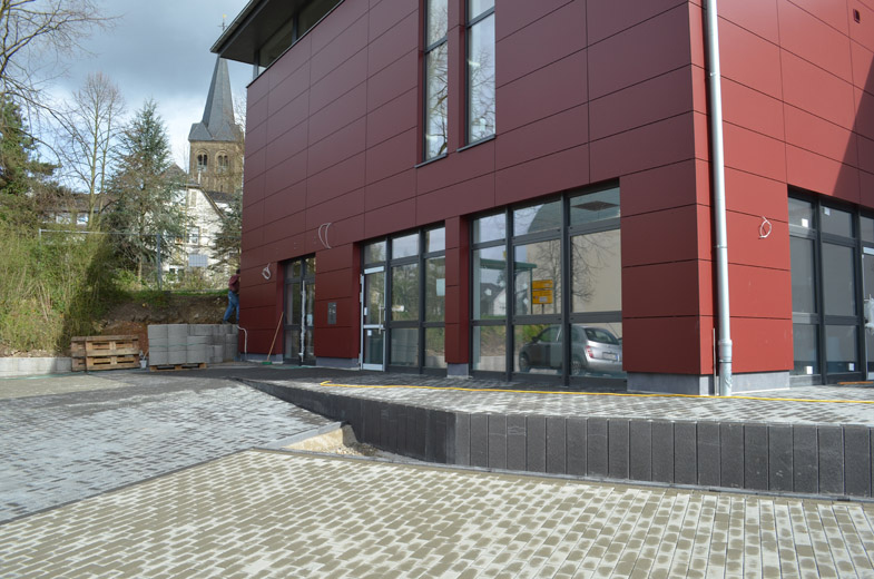 Es werde LichtDie Leuchten sind eingebaut. Bald folgt auch ein Lichtkranz (in der Aufhängung schaukelt zur Zeit noch Methusalem). Und auch das Außengelände nimmt langsam Formen an, damit am 1. März alles bereit ist.