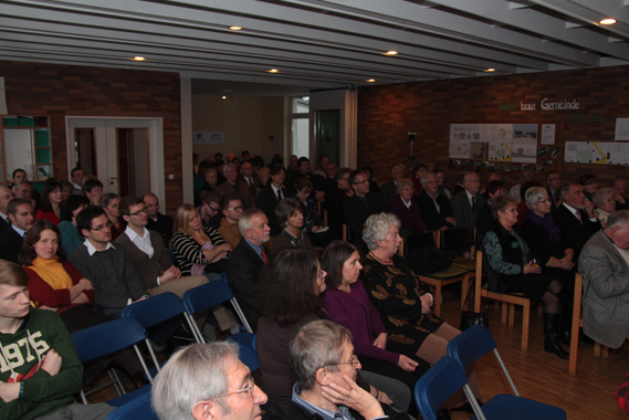 Viele waren der Einladung gefolgt und so wurde der Gottesdienst im vollbesetzten Gemeindesaal auch in den Nebenraum übertragen.