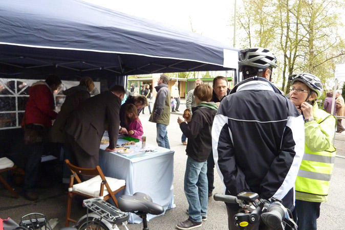 Eröffnung der BalkantrasseAuch wir haben uns an der Eröffnung des neuen Radweges beteiligt. Am 22. April bei sprichwörtlichem Aprilwetter mit Sonne und kräftigen Regenschauern waren wir unter einem schützenden Pavilon am Ausgang des Luchtenbergparks zu finden. Hier wurden Buttons selber gestaltet und zum Frühlingsfest an der Weiherstraße eingeladen.