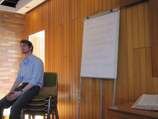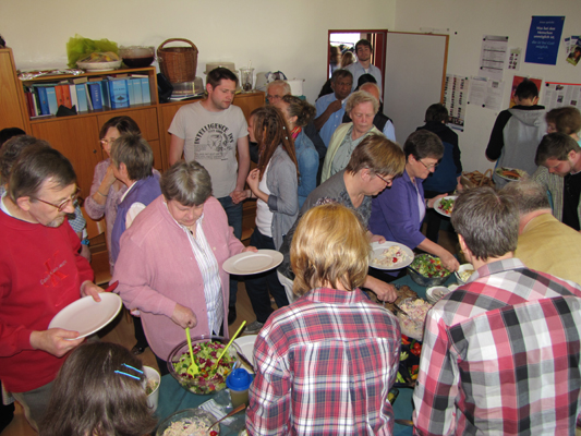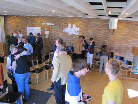 Die Suche hat ein Ende! Unser Kennenlerntag mit Pastorenanwärter Lukas Schülbe am 25. März ist vorbei. Bei schönem Wetter und gutem Essen konnten wir uns an diesem Tag, der mit einem Gottesdienst begann und mit einem kleinen Rundgang durch Burscheid endete, kennenlernen. Lukas Schülbe, der sein Theologiestudium diesen Sommer am Theologischen Seminar in Ewersbach beendet, hielt die Predigt im Gottesdienst.Im Anschluss daran fand ein gemeinsames Mittagessen und eine Vorstellungsrunde statt. Nach dem Mittagessen sprach Lukas Schülbe zum Thema Wie stellt sich der Pastor den zukünftigen Gemeindedienst vor? . Zum Abschluss gab es eine "Führung" durch die Stadt Burscheid, die in der Weiherstraße 5 - unserem neuen Zuhause - endete. Hier ein paar Eindrücke unseres Tages: