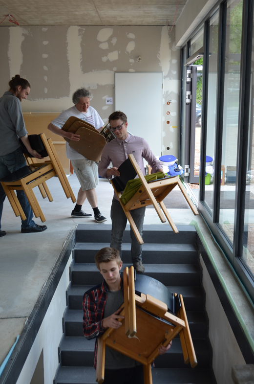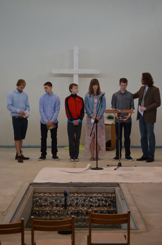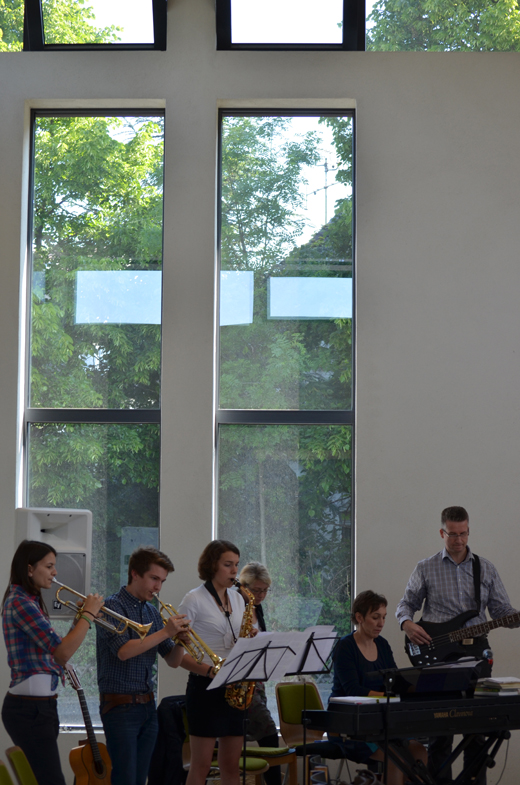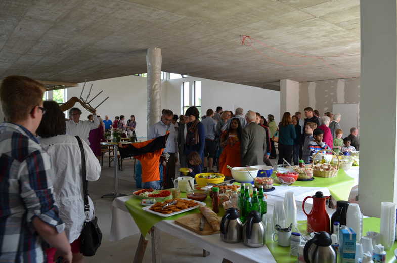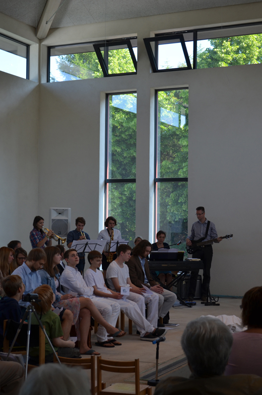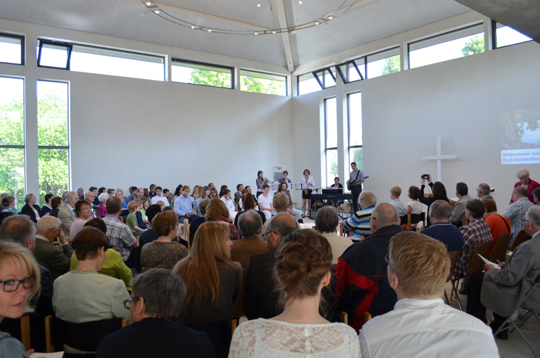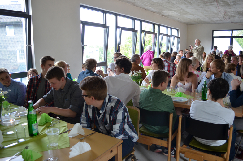 Die Glaswände des Gemeindesaals sind geöffnet und auch im Foyer stehen Stühle. Trotzdem müssen kurz vor 11 Uhr noch weitere Stühle herbeigeschafft werden, um den ca. 350 Besuchern eine Sitzgelegenheiten zu schaffen, der erste „Mehrweg“ an diesem Tag. „Mehrweg“ – unter diesem Thema stand die Einweihung. In der Predigt, die von unserem Pastor Lukas Schülbe zusammen mit dem Lokaljournalisten und Laienprediger der evangelischen Kirche Ekkehard Rüger gehalten wurde, ging es am Beispiel der Emmausjünger (Lk 24, 13-35) um die zwei Perspektiven des Themas „Mehrweg“. Zum einen um die Hoffnung, dass sich in diesem Haus viel mehr Wege treffen, als wir uns im Moment denken und dies keine Sackgassen sind, sondern eine wilde Kreuzung von vielen Lebenswegen. Zum anderen aber auch darum, dass Gott selber so in diesem Haus wirkt, dass mehr wird aus unseren Lebenswegen. Freizeit 2015