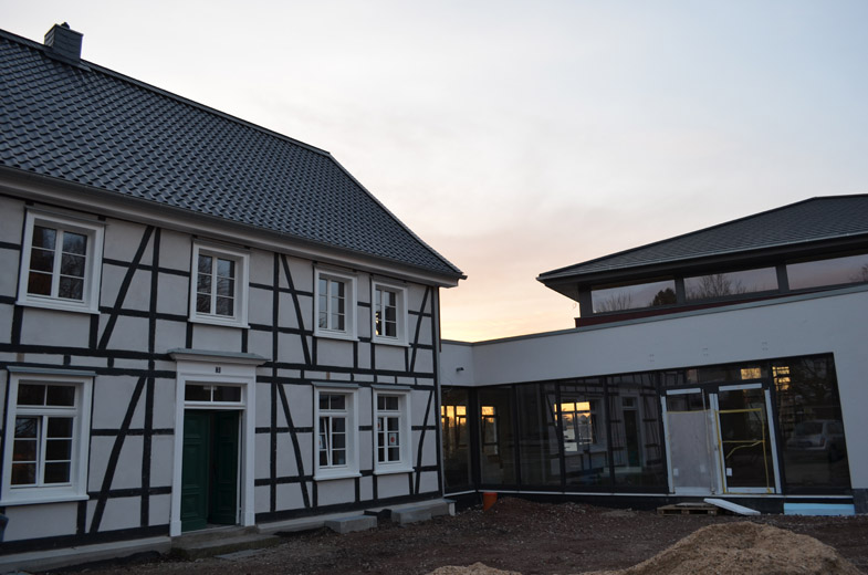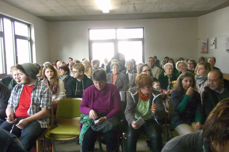 In dem Raum, der im nächsten Jahr in voller Schönheit funktionieren wird, waren aber trotzdem um 12.00 Uhr fast alle Plätze an den langen Tischen besetzt. Schon seit dem frühen Morgen wuselten fleißige Küchenhelferinnen durch den Rohbau. Hangelten sie sich an einem provisorischen Geländer hinunter in den Heizraum zur Kaffeemaschine?