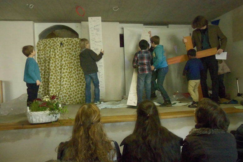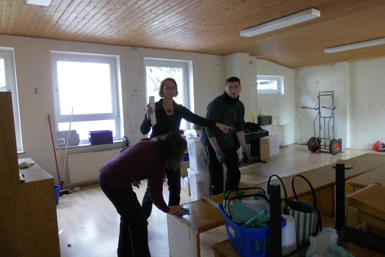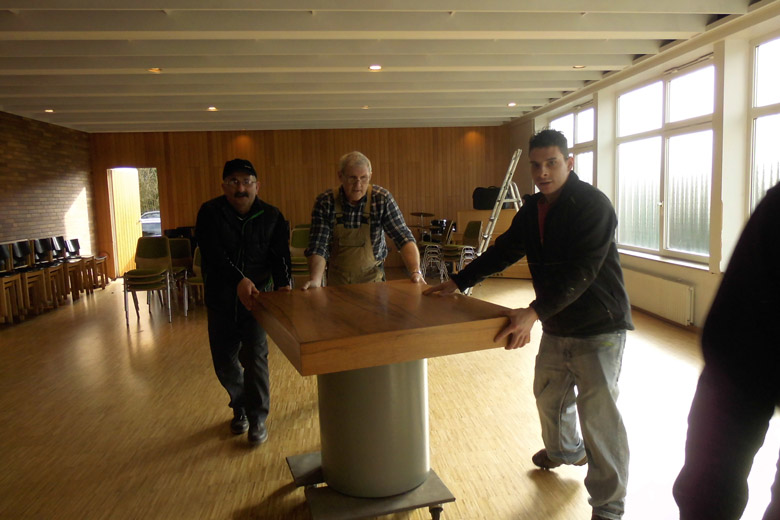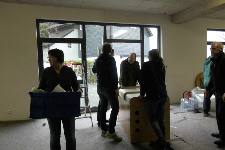 Schon am 24. Februar wurden die ersten Dinge abgebaut. In der folgenden Woche ging es weiter mit Einpacken in der Höhestraße bis am 2. März 2014 die letzten Gegenstände - das Kreuz, die Bibel, das Abendmahlsgeschirr - in der Weiherstraße wieder ausgepackt wurden.