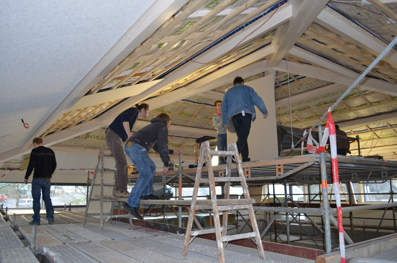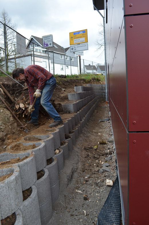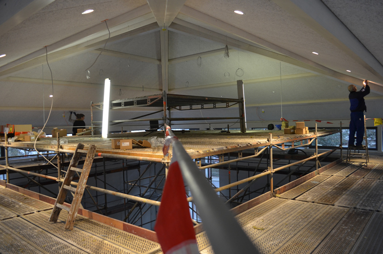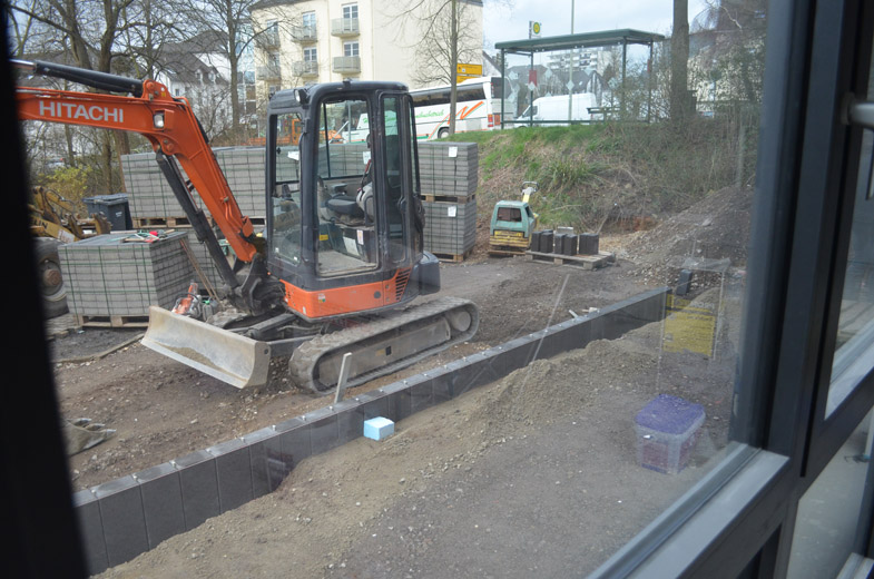 Es werde LichtDie Leuchten sind eingebaut. Bald folgt auch ein Lichtkranz (in der Aufhängung schaukelt zur Zeit noch Methusalem). Und auch das Außengelände nimmt langsam Formen an, damit am 1. März alles bereit ist.