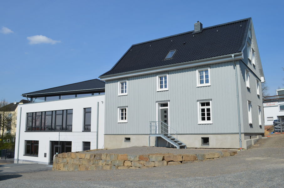 Ein Haus, wie aus einem Märchenbuch, viel Holz, viel Dekor und Fenster aus echtem Glas – und daneben eine Fläche, glatt und grau gefärbt.